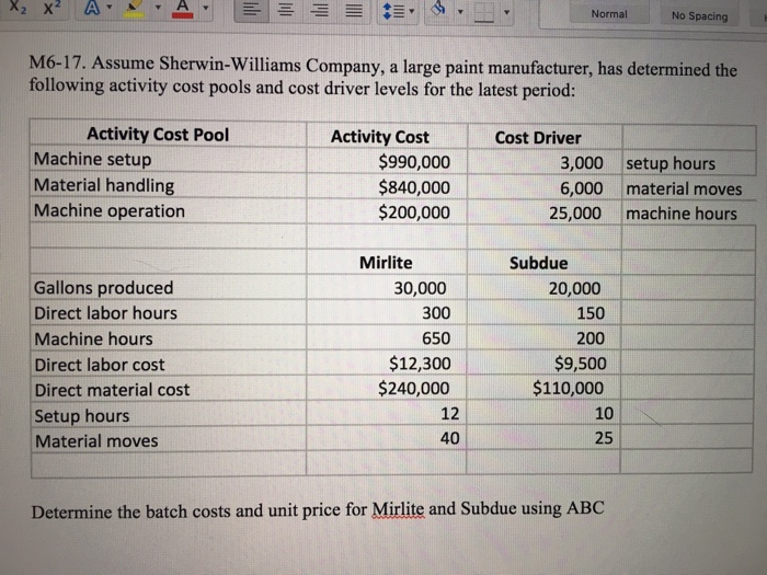 Solved Normal No Spacing M6 17 Assume Sherwin Williams Chegg Com